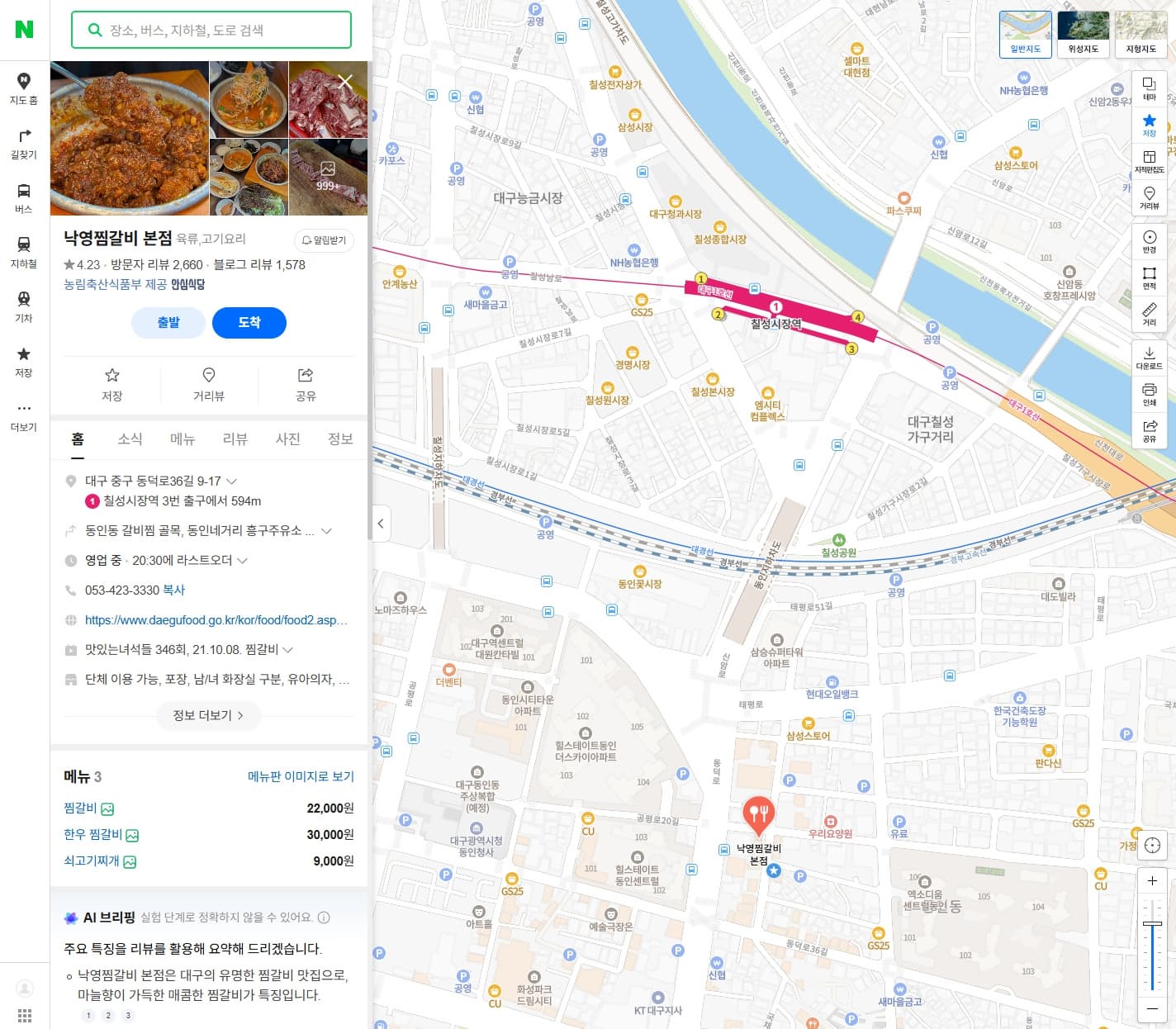 그중에서도 대구 중구 동덕로36길에 위치한 **‘낙영찜갈비 본점’**은