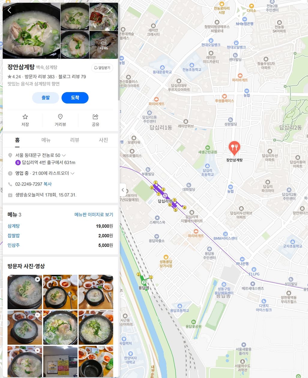 동대문구 답십리동, 조용한 주택가에 위치한 **‘장안삼계탕’**은