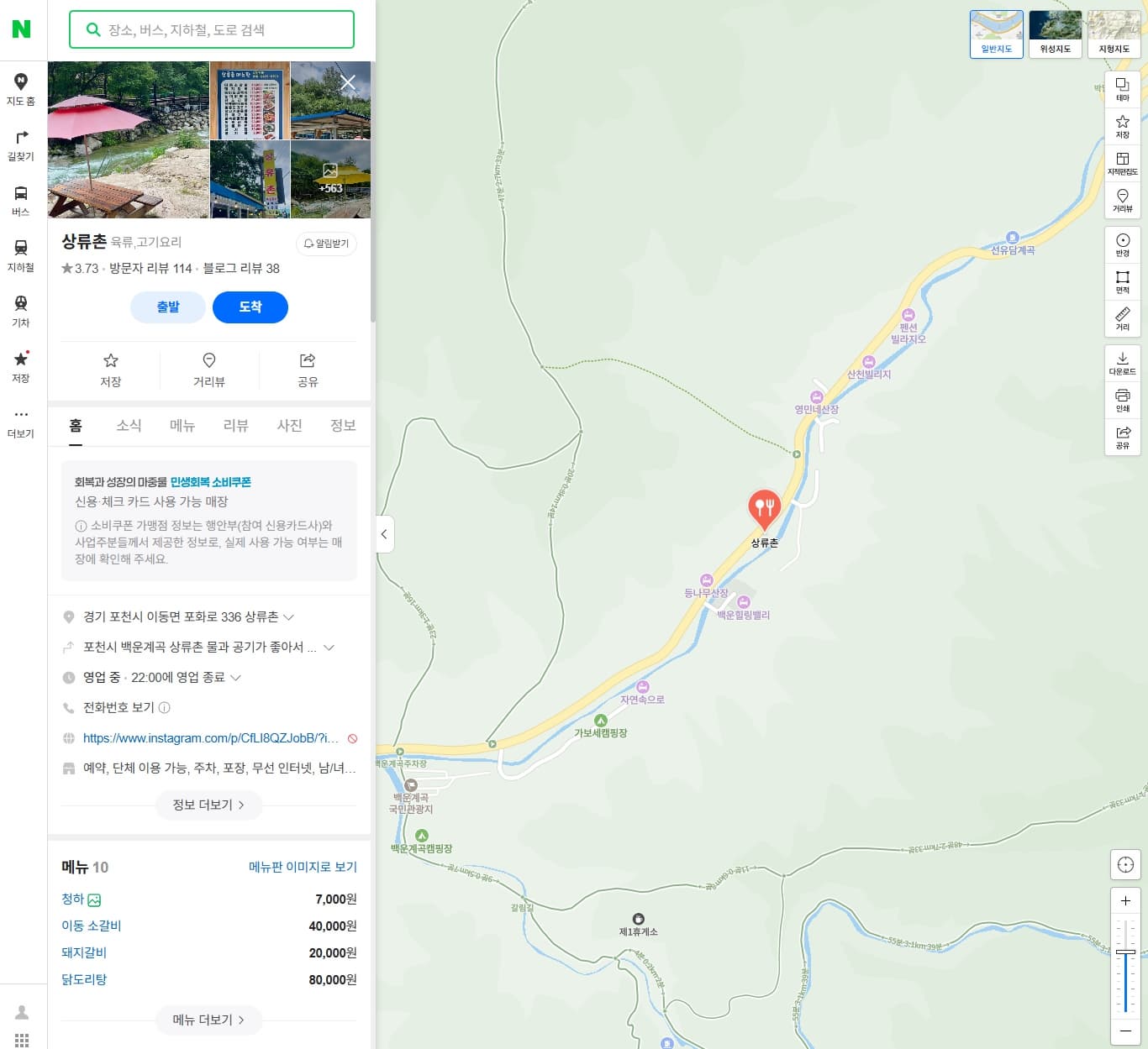 - 내비 검색: ‘상류촌’ 또는 ‘포천시 이동면 도평리 22-2’